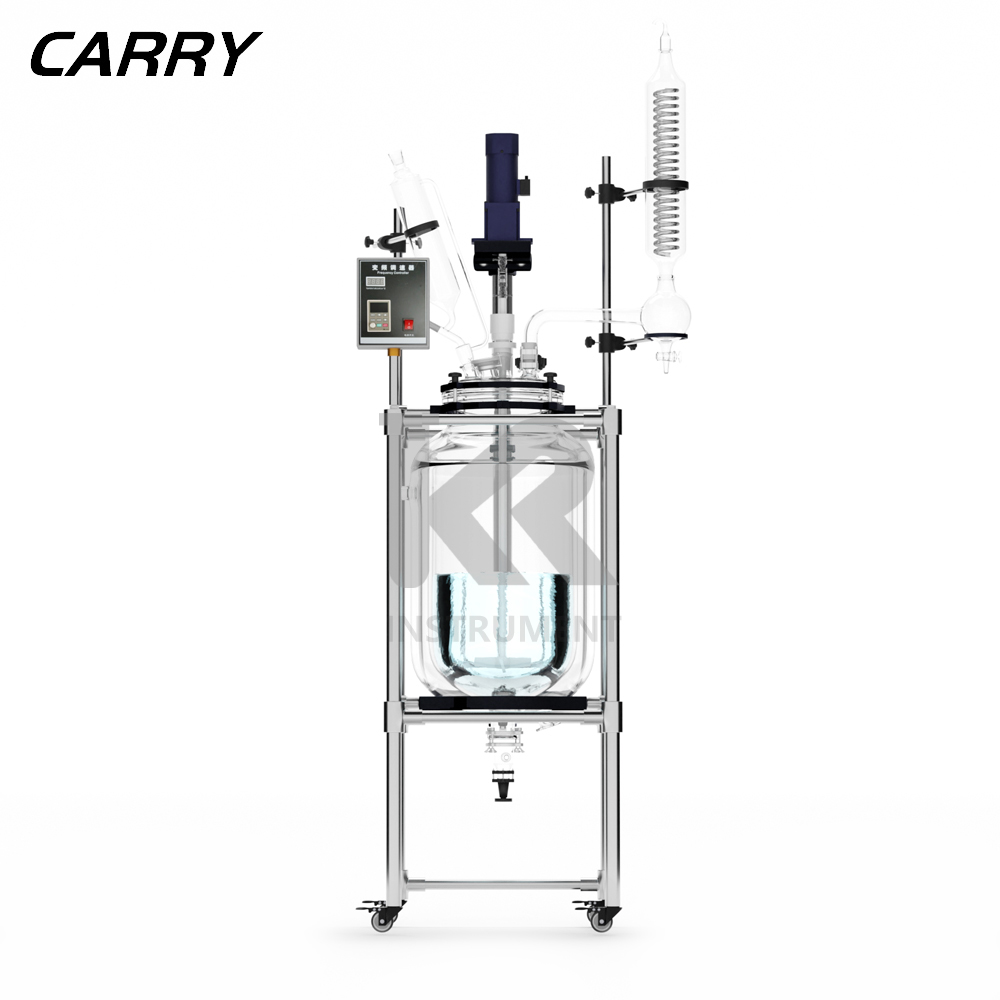 50L雙層玻璃反應(yīng)釜具有電動恒速攪拌系統(tǒng)、冷凝、滴加系統(tǒng),釜體夾層需外接...